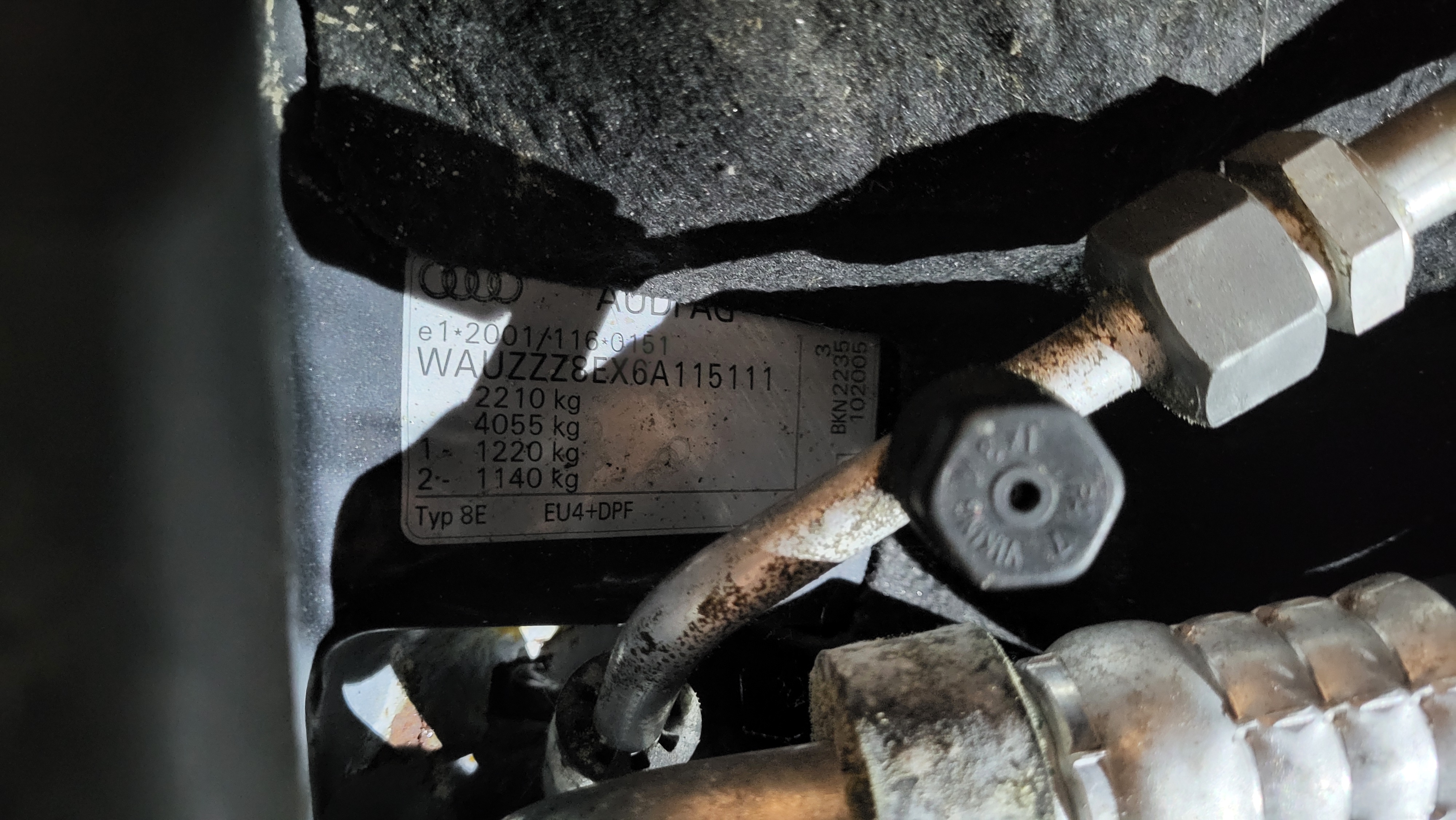 | 1. | Audi A4 Kombi, nr VIN WAUZZZ8EX6A115111. Na podstawie numeru VIN ustalono rok produkcji na 2006 r. | 8 000,00 zł | 1 200,00 zł | - pojazd nie figuruje w bazie CEPIK, nie jest zarejestrowany w Polsce, - pojazd nie posiada kluczyków oraz tablic rejestracyjnych, - wnętrze samochodu zabrudzone, zawilgocone, z widocznymi znacznymi śladami pleśni na desce rozdzielczej, siedzeniach, kierownicy i elementach plastikowych, - na pokrywie silnika napis V6-3.0 TDI, - na maskownicy chłodnicy oraz siedzeniach przednich oraz progu od strony kierowcy widoczny napis „S line", - manualna skrzynia biegów, - obramowanie lampy „stop" zardzewiałe,