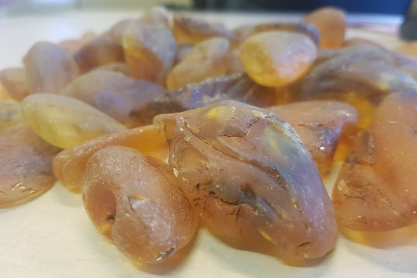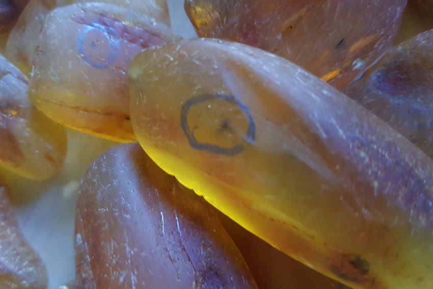 Do odprawy celnej na przejściu granicznym w Gronowie zgłosił się obywatel Federacji Rosyjskiej. Mężczyzna zadeklarował, że przewozi dozwoloną normę tj. dwie paczki papierosów. Funkcjonariusz przyjmujący zgłoszenie zdecydował jednak o skierowaniu pojazdu do Budynku Kontroli Szczegółowej. Tam w trakcie przeszukania podróżnego okazało się, ze ukrył pod ubraniem 820 gramów bursztynu. Ujawniony jantar zawierał inkluzje czyli skamieniałe organizmy owadów zachowane w bryłkach. Podjęto decyzję o wycenie kamienia przez rzeczoznawcę, ponieważ może on mieć znaczną wartość.