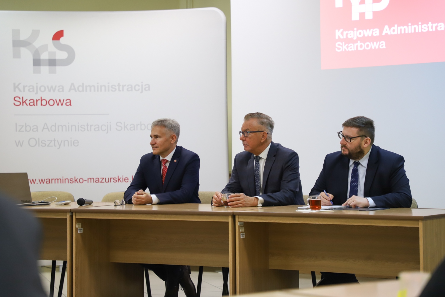 16 września br. w siedzibie IAS odbyło się spotkanie Mariusza Pawłowskiego, Dyrektora Izby Administracji Skarbowej w Olsztynie z Adamem Abramowiczem, Rzecznikiem Małych i Średnich Przedsiębiorców oraz przedsiębiorcami z regionu. Spotkanie było okazją do omówienia aktualnych zagadnień związanych z prawem podatkowym. Podczas spotkania poruszono wiele kwestii, które znalazły się w zainteresowaniu przedsiębiorców, m.in. długość trwania postępowań podatkowych, zwroty VAT, postępowania karne skarbowe, postępowania dowodowe. W trakcie dyskusji nawiązano do Konstytucji Biznesu, a także omówiono tematykę związaną z technicznymi aspektami współpracy i dialogu pomiędzy Krajową Administracją Skarbową i przedsiębiorcami, podkreślając przy tym rolę Rzecznika MŚP.