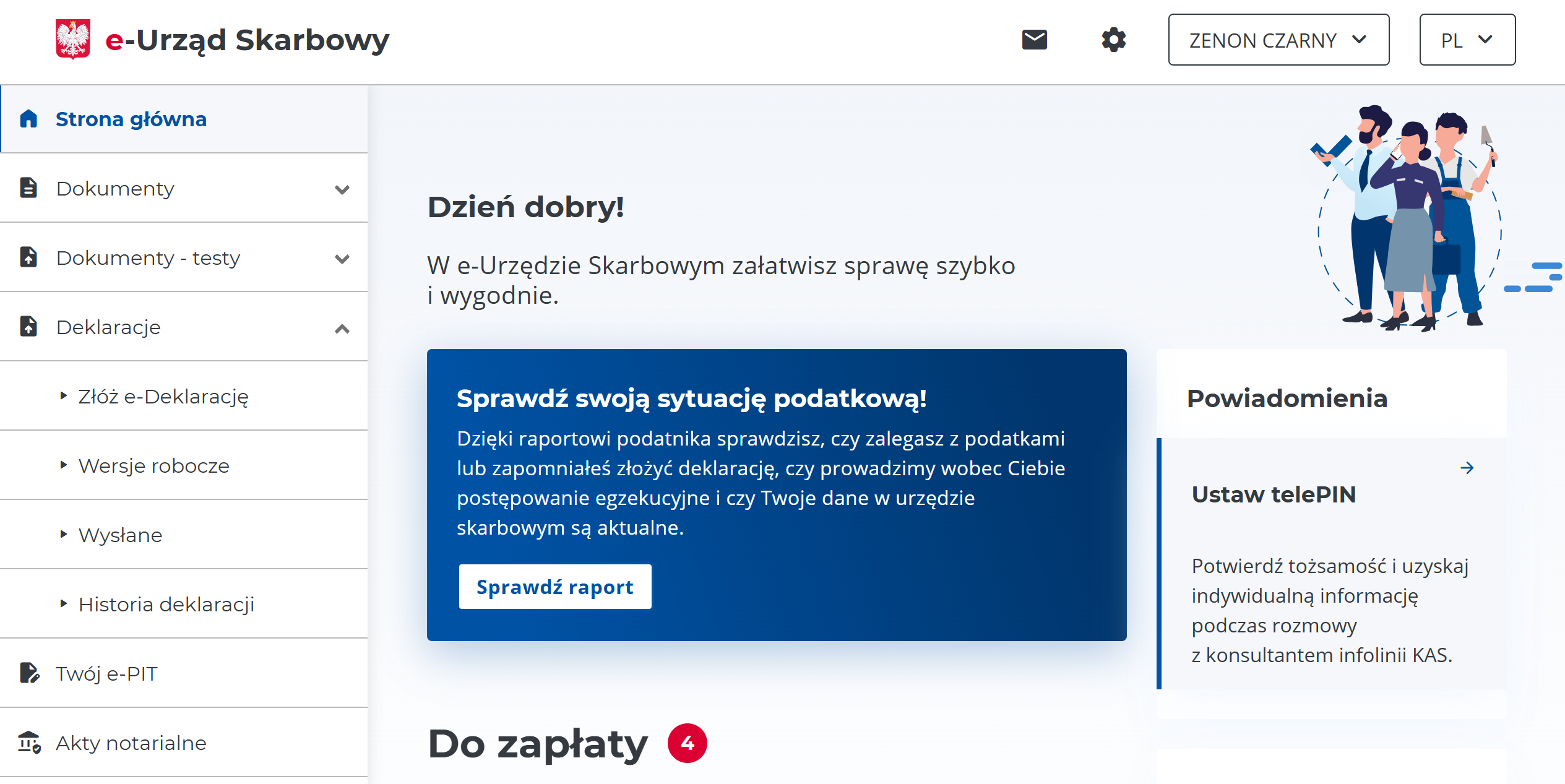 - Zaloguj się do e-Urzędu Skarbowego: https://urzadskarbowy.gov.pl/.