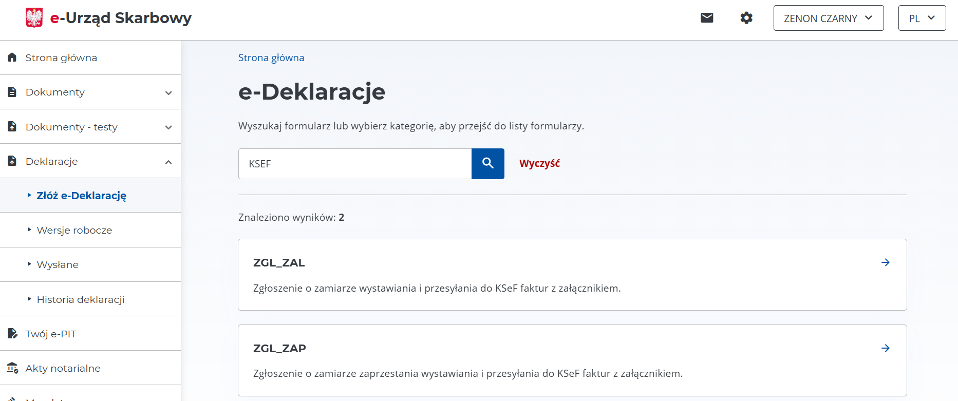 Aby wystawiać w KSeF 2.0 faktury z załącznikiem, należy zgłosić ten zamiar w usłudze e-Urząd Skarbowy. W tym celu udostępniliśmy formularz ZGL_ZAL. Zgłoszenia nie należy przesyłać w ramach „pisma ogólnego".