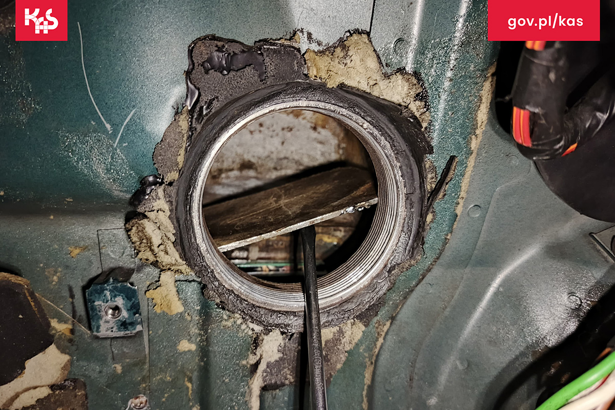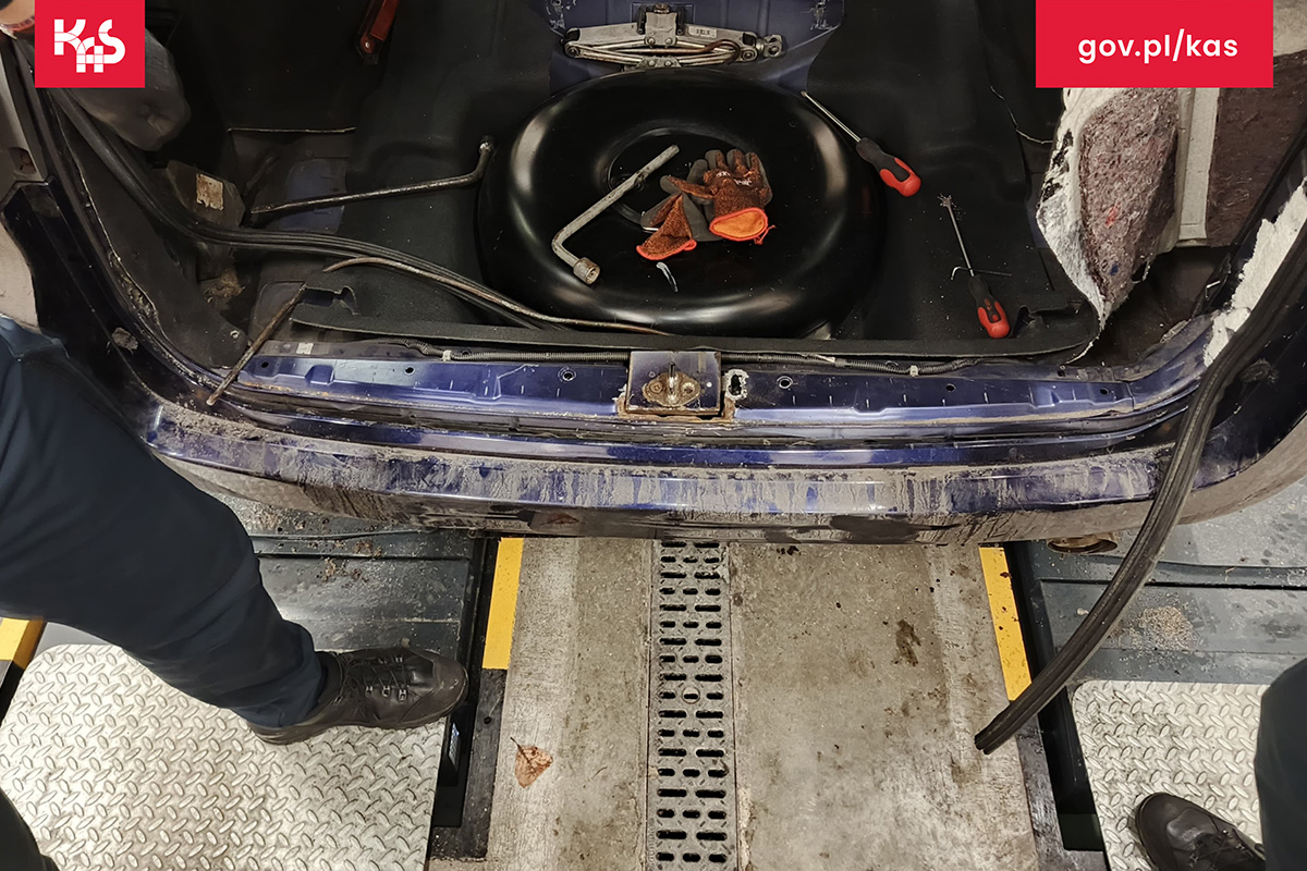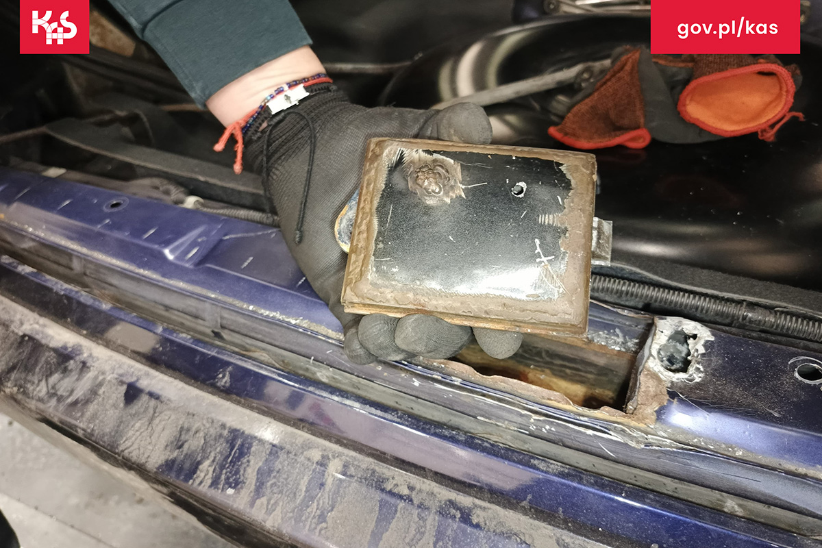 Z kolei w drugim aucie funkcjonariusze odkryli skrytki w podwójnej belce tylnego zderzaka oraz w rolecie bagażnika. Ich ujawnienie wymagało wykonania otworów inspekcyjnych i użycia specjalistycznych narzędzi.
