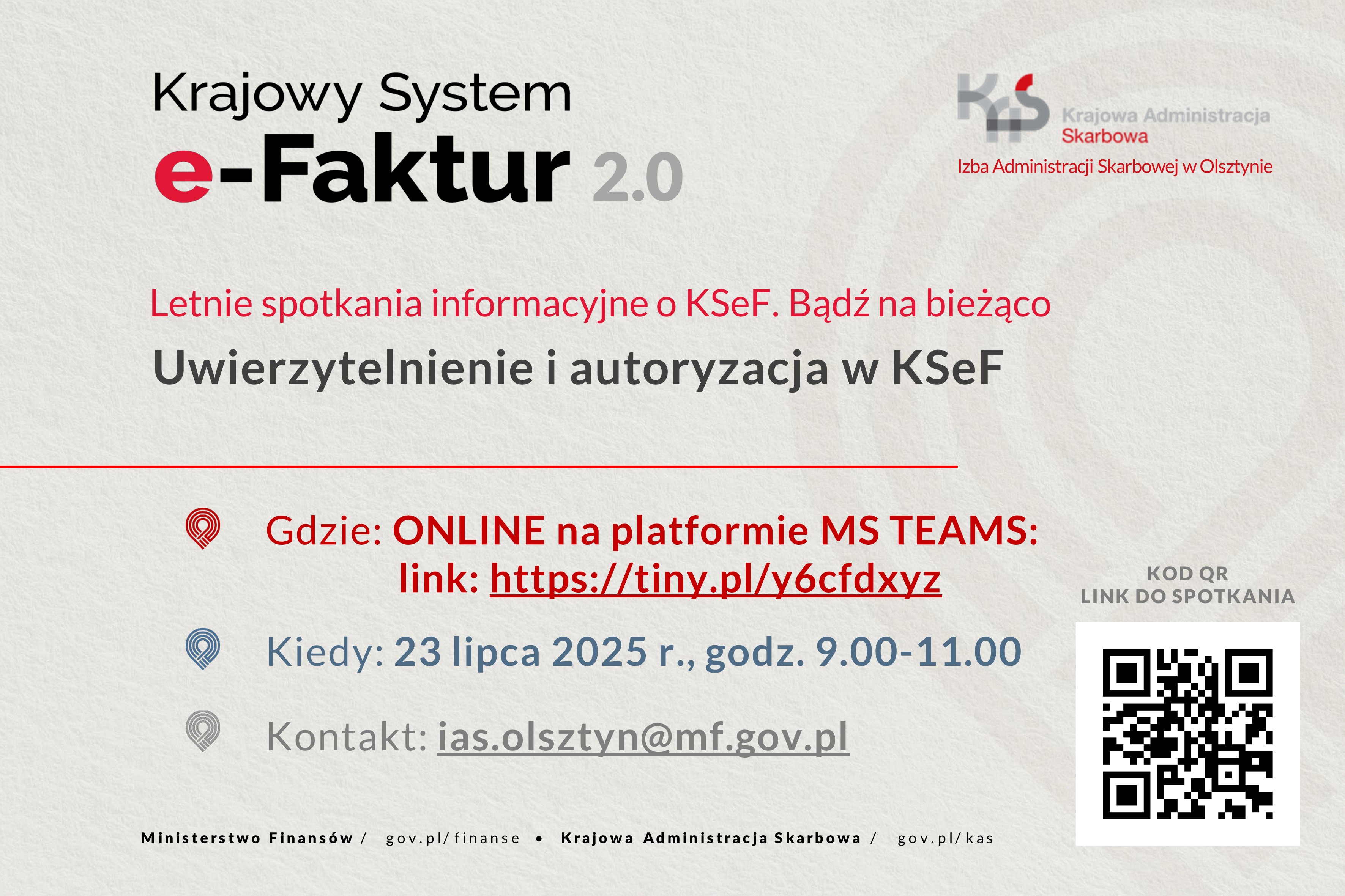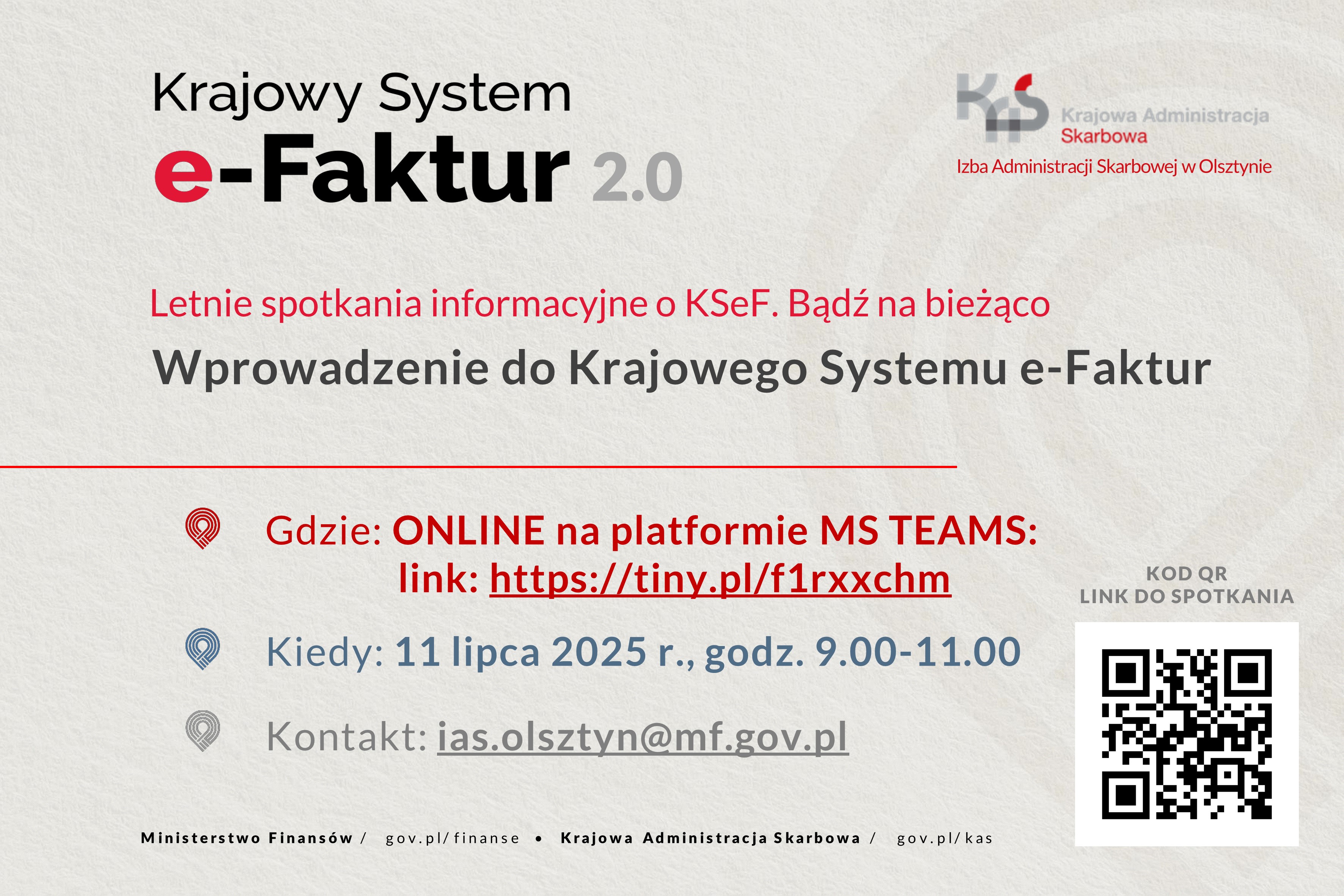 Izba Administracji Skarbowej w Olsztynie zaprasza na darmowe spotkanie ONLINE z cyklu „Letnie spotkania informacyjne o KSeF. Bądź na bieżąco":
