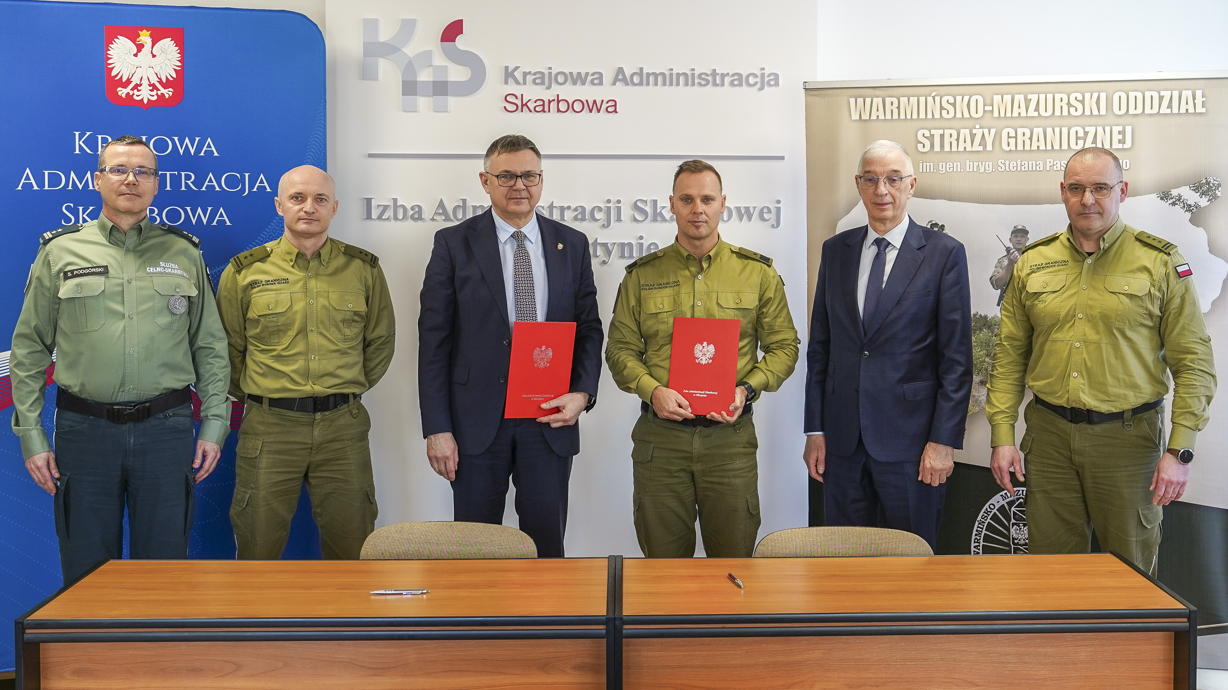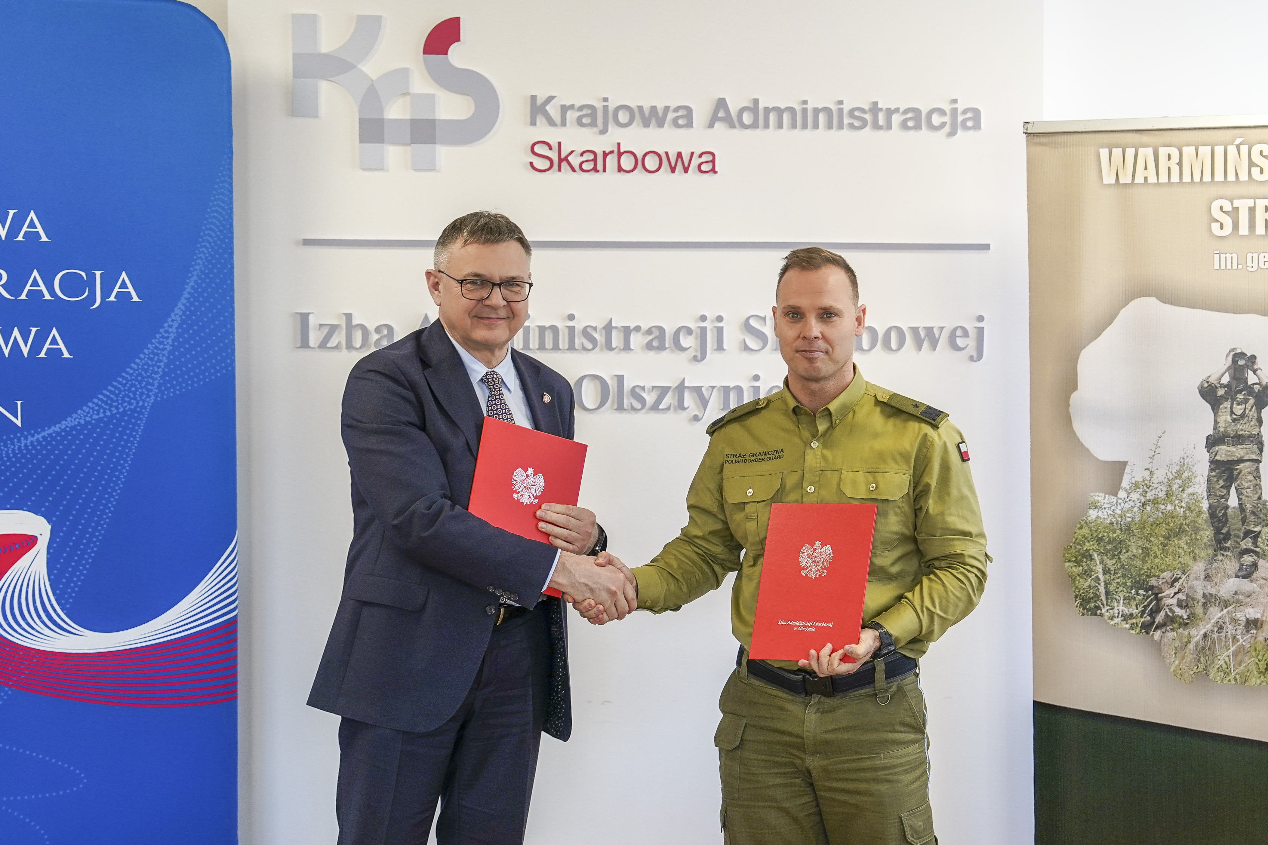 18 marca br. Dyrektor Izby Administracji Skarbowej w Olsztynie Pan Jarosław Orłowski i Komendant Warmińsko-Mazurskiego Oddziału Straży Granicznej gen. bryg. SG Daniel Wojtaszkiewicz podczas spotkania w siedzibie IAS Olsztyn ocenili współpracę za miniony (2025) rok. W spotkaniu uczestniczyli również Zastępca Dyrektora IAS w Olsztynie Pan Jarosław Borawski, Naczelnik Warmińsko-Mazurskiego #UCS mł. insp. Sławomir Podgórski, płk SG Rafał Grzejszczak Zastępca Komendanta W-MOSG, ppłk SG Mariusz Bieniek Naczelnik Wydziału Granicznego W-MOSGO. Współpraca opierała się głównie na dobrej komunikacji, wspólnych działaniach oraz skutecznej wymianie informacji.