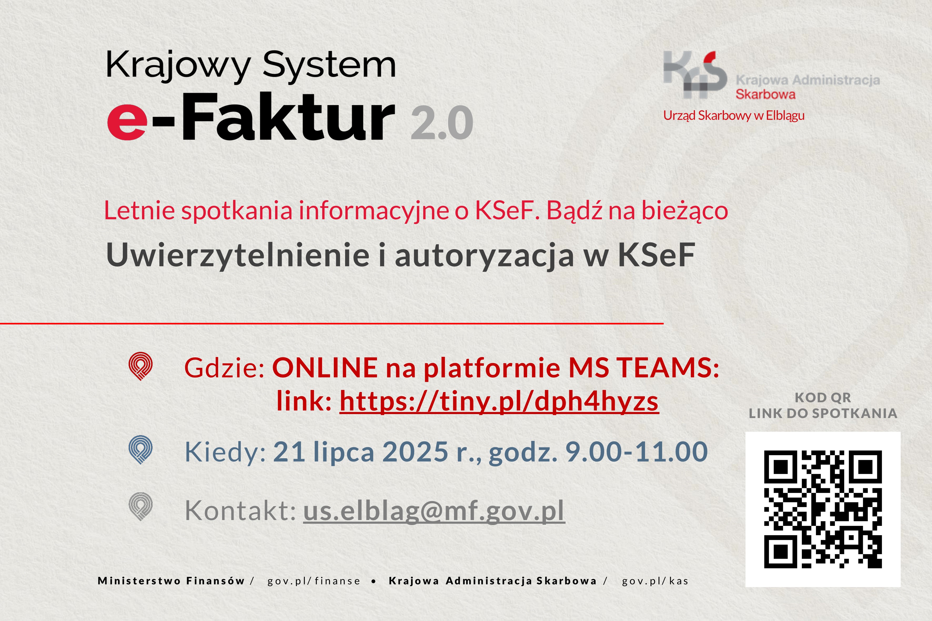 Urząd Skarbowy w Elblągu zaprasza na darmowe spotkanie ONLINE z cyklu „Letnie spotkania informacyjne o KSeF. Bądź na bieżąco":