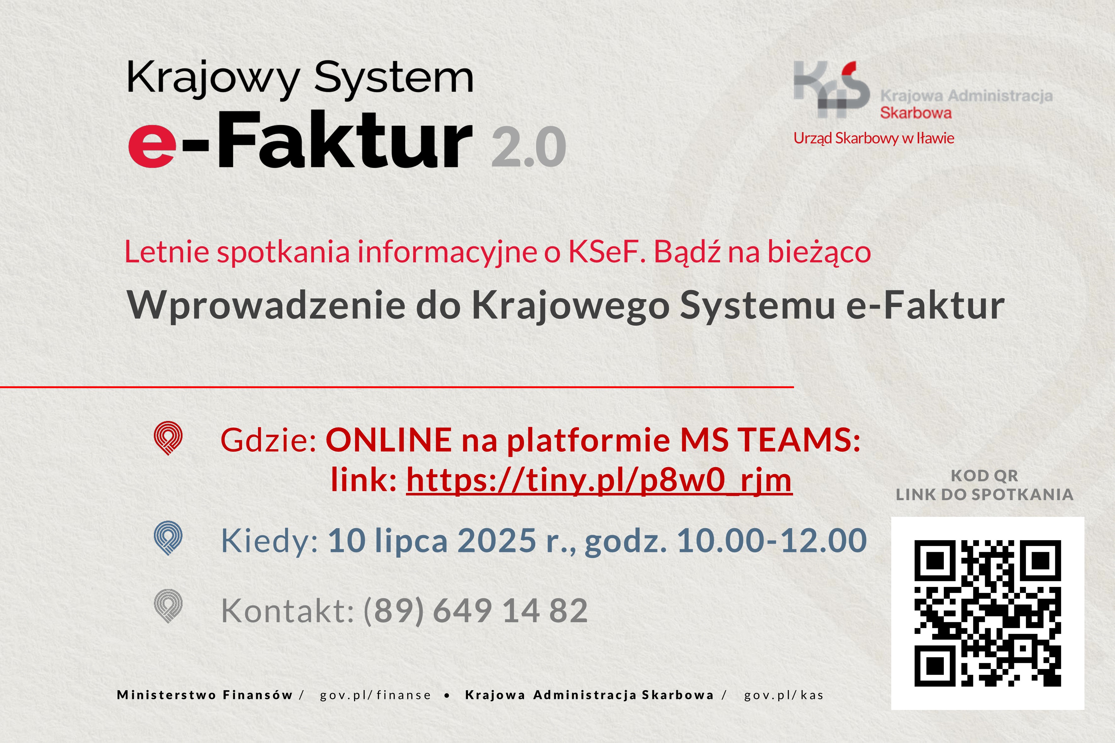 Urząd Skarbowy w Iławie zaprasza na darmowe spotkanie ONLINE z cyklu „Letnie spotkania informacyjne o KSeF. Bądź na bieżąco":
