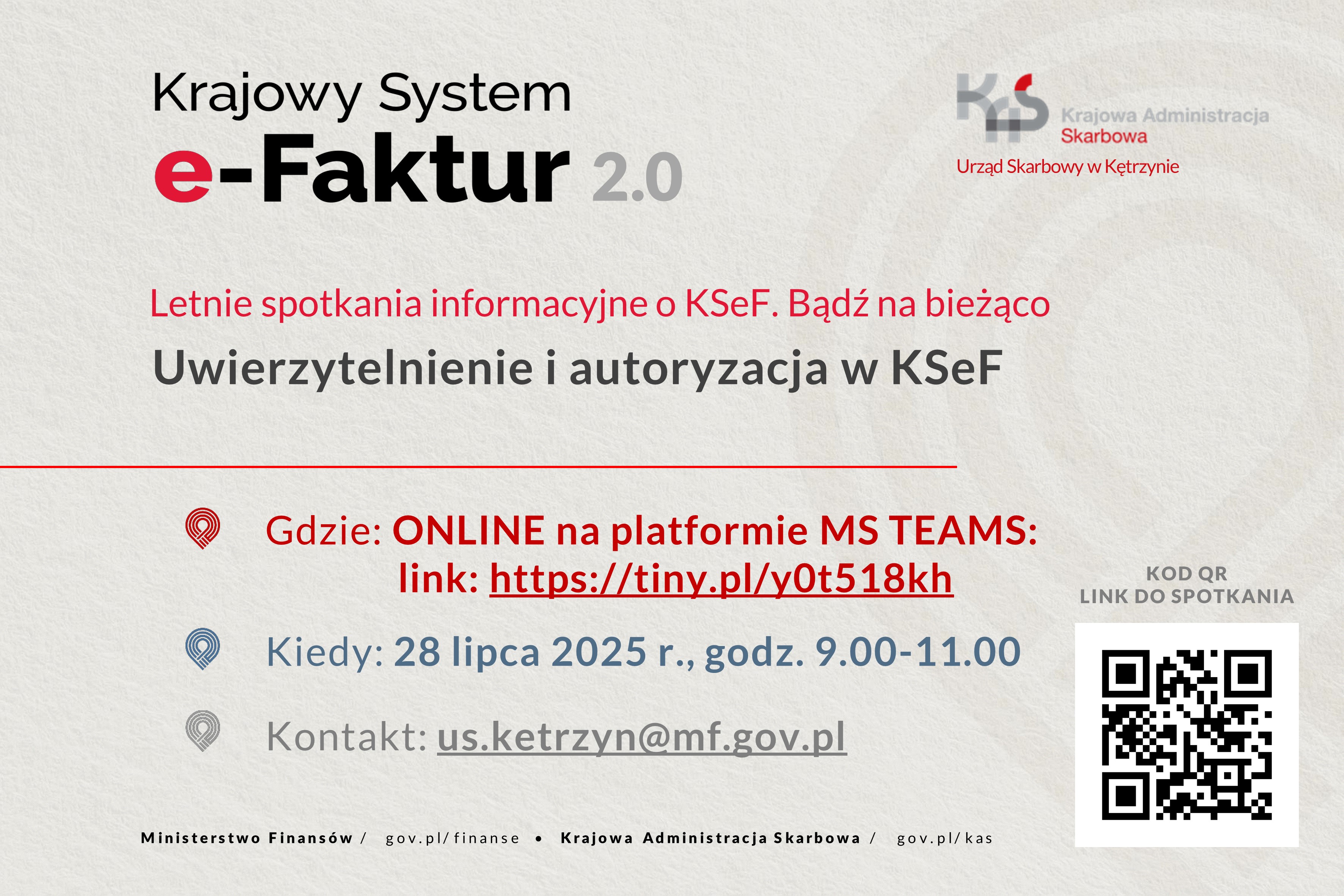 Urząd Skarbowy w Kętrzynie zaprasza na darmowe spotkanie ONLINE z cyklu „Letnie spotkania informacyjne o KSeF. Bądź na bieżąco":
