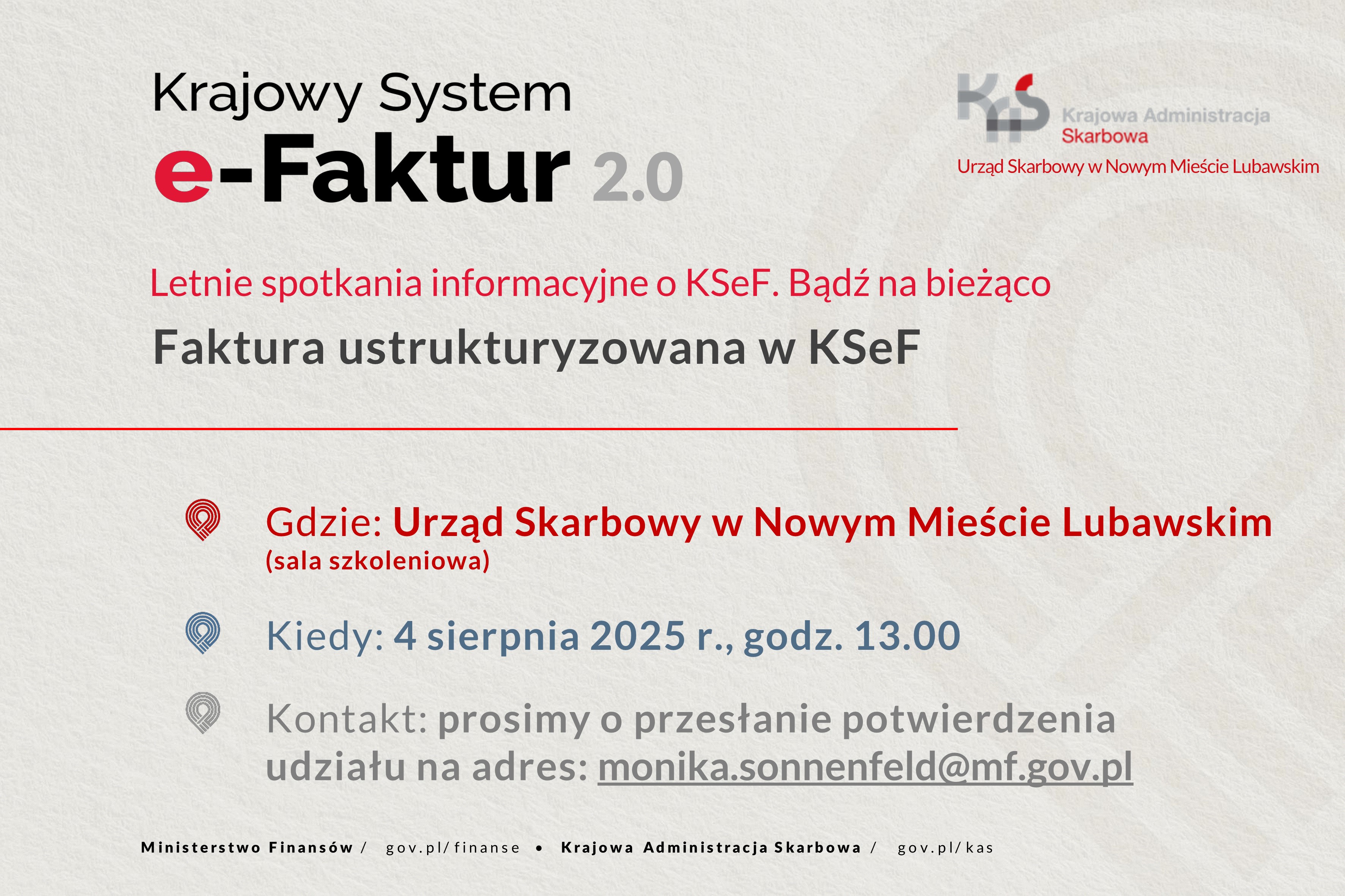 Urząd Skarbowy w Nowym Mieście zaprasza na darmowe spotkanie informacyjne z cyklu „Letnie spotkania informacyjne o KSeF. Bądź na bieżąco":