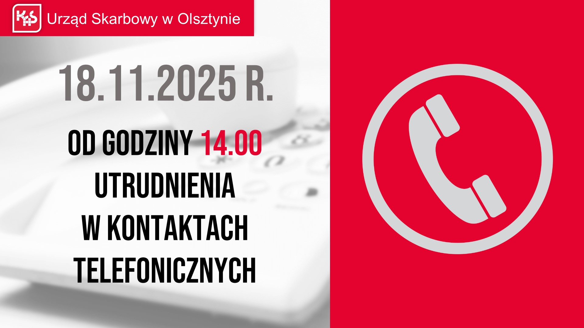 W dniach 20-21.11.2025 r. odbywają się prace dotyczące modernizacji sieci telefonicznej Urzędu Skarbowego w Olsztynie które mogą powodować problemy z kontaktem telefonicznym z pracownikami urzędu.