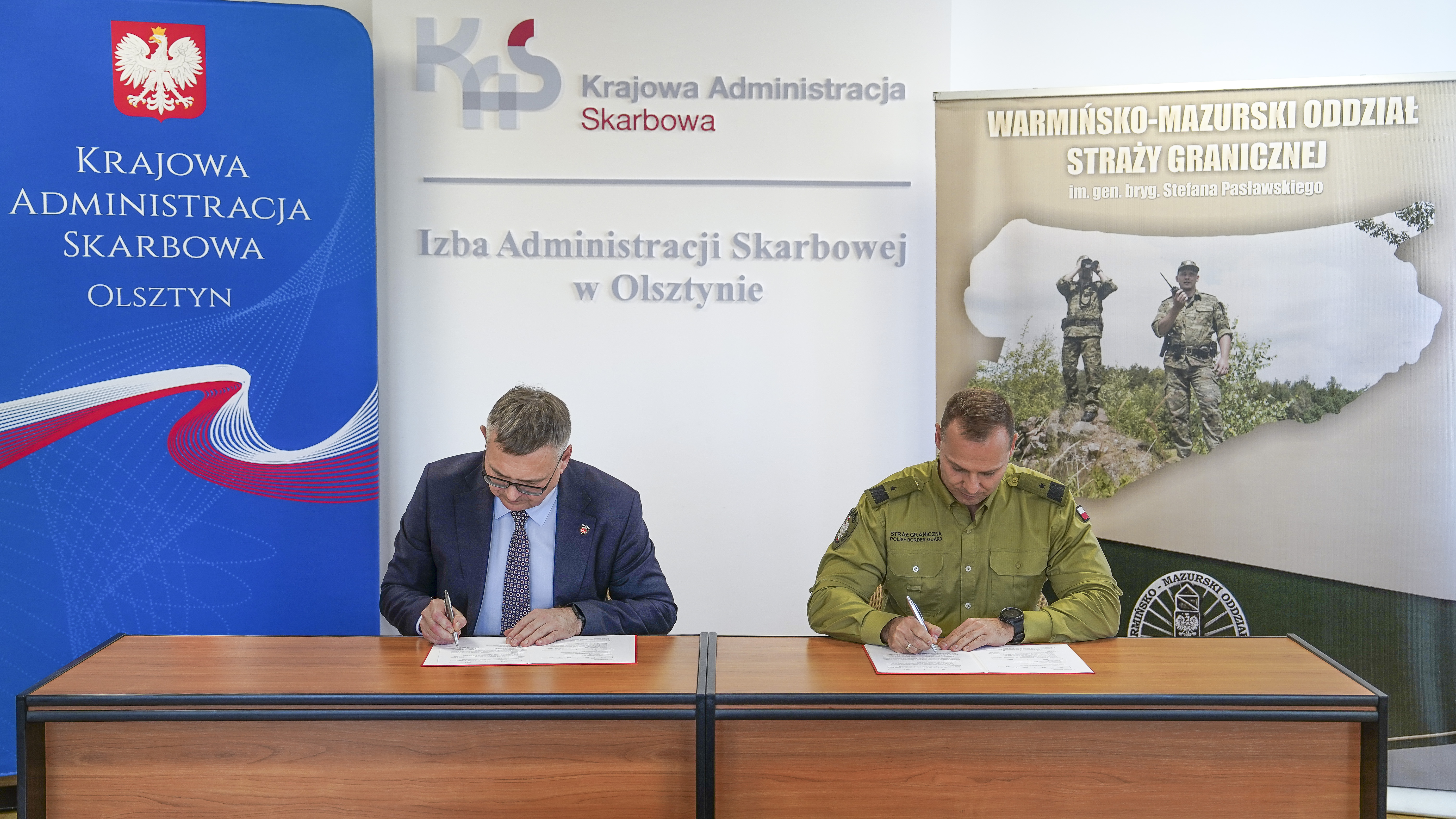 18 marca br. Dyrektor Izby Administracji Skarbowej w Olsztynie Pan Jarosław Orłowski i Komendant Warmińsko-Mazurskiego Oddziału Straży Granicznej gen. bryg. SG Daniel Wojtaszkiewicz podczas spotkania w siedzibie IAS Olsztyn ocenili współpracę za miniony (2025) rok. W spotkaniu uczestniczyli również Zastępca Dyrektora IAS w Olsztynie Pan Jarosław Borawski, Naczelnik Warmińsko-Mazurskiego #UCS mł. insp. Sławomir Podgórski, płk SG Rafał Grzejszczak Zastępca Komendanta W-MOSG, ppłk SG Mariusz Bieniek Naczelnik Wydziału Granicznego W-MOSGO. Współpraca opierała się głównie na dobrej komunikacji, wspólnych działaniach oraz skutecznej wymianie informacji.
