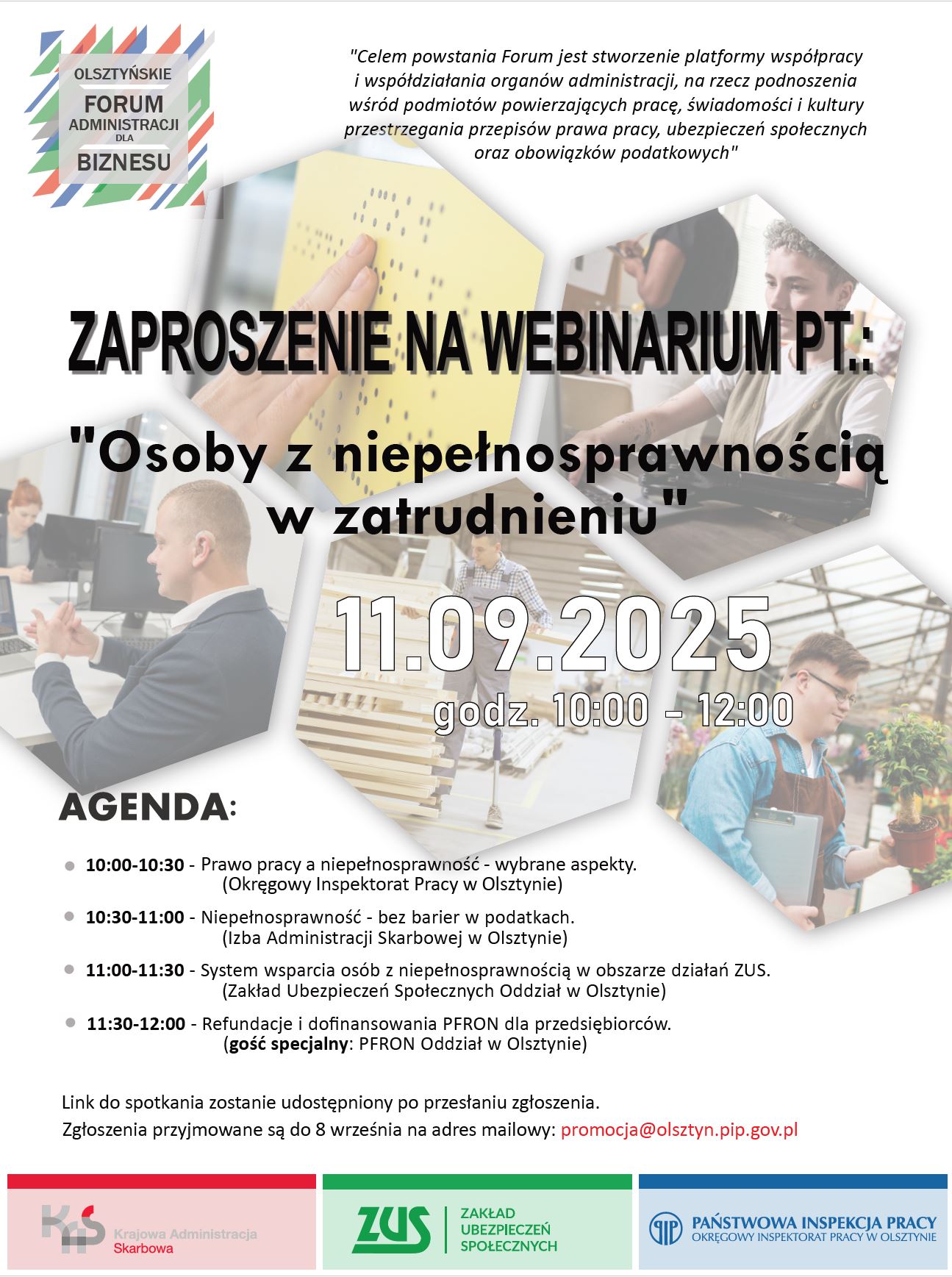 Aby wziąć udział w wydarzeniu, należy wysłać zgłoszenie na adres: promocja@olsztyn.pip.gov.pl do 8 września 2025 r.