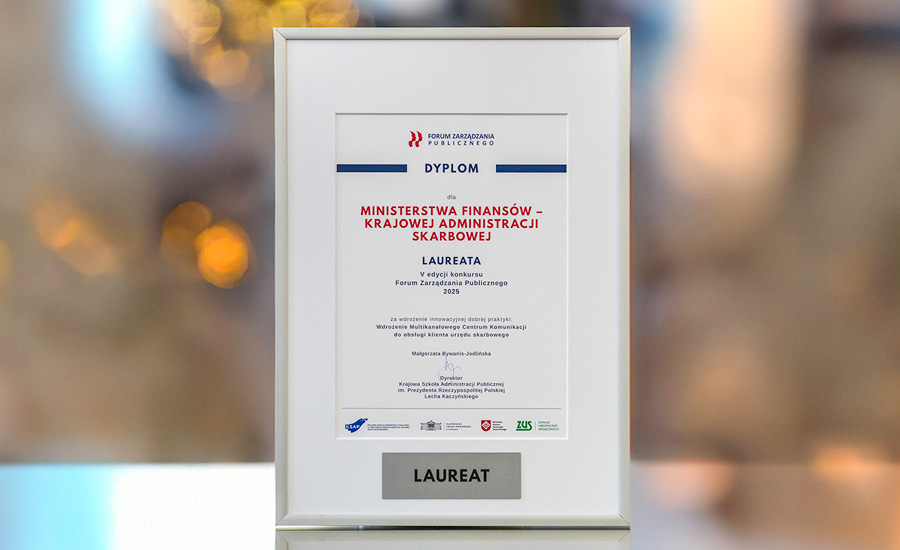 • Ministerstwo Finansów i Krajowa Administracja Skarbowa zdobyły tytuł laureata V edycji konkursu Fundacji Zarządzania Publicznego za projekt „Wdrożenie Multikanałowego Centrum Komunikacji do obsługi klienta urzędu skarbowego".
